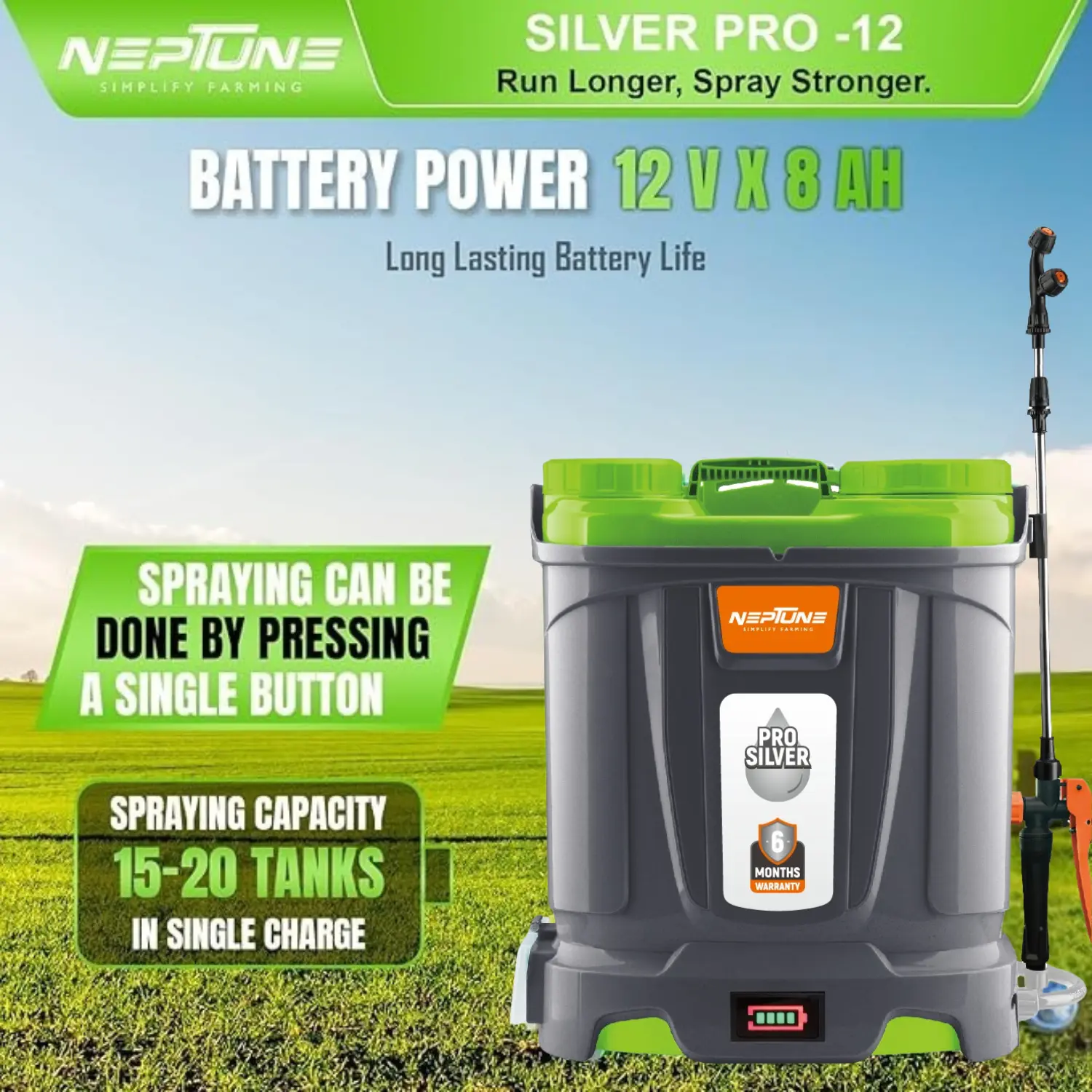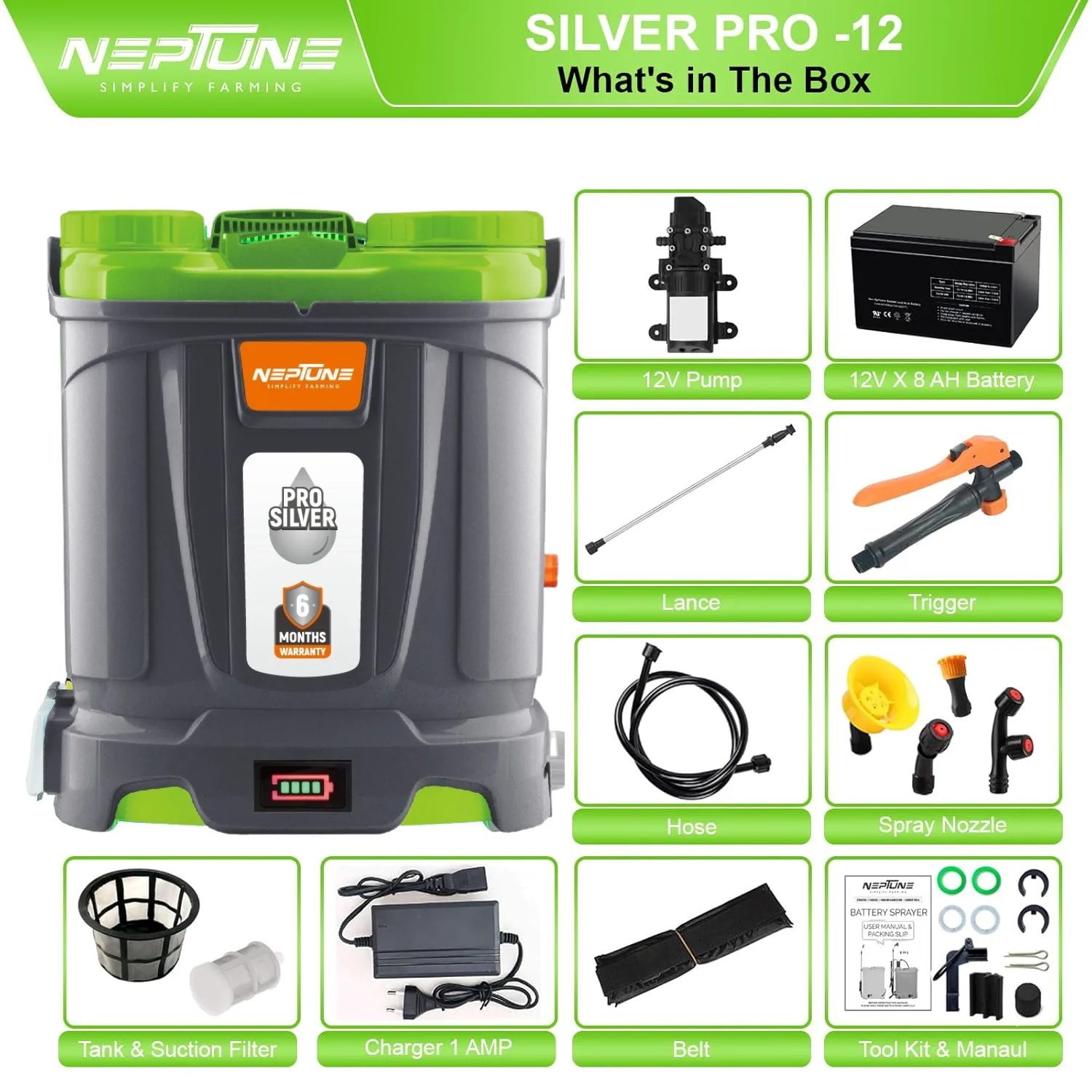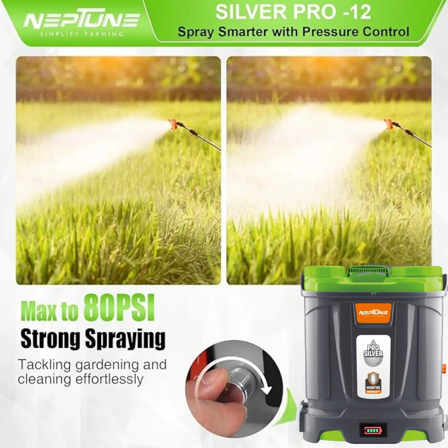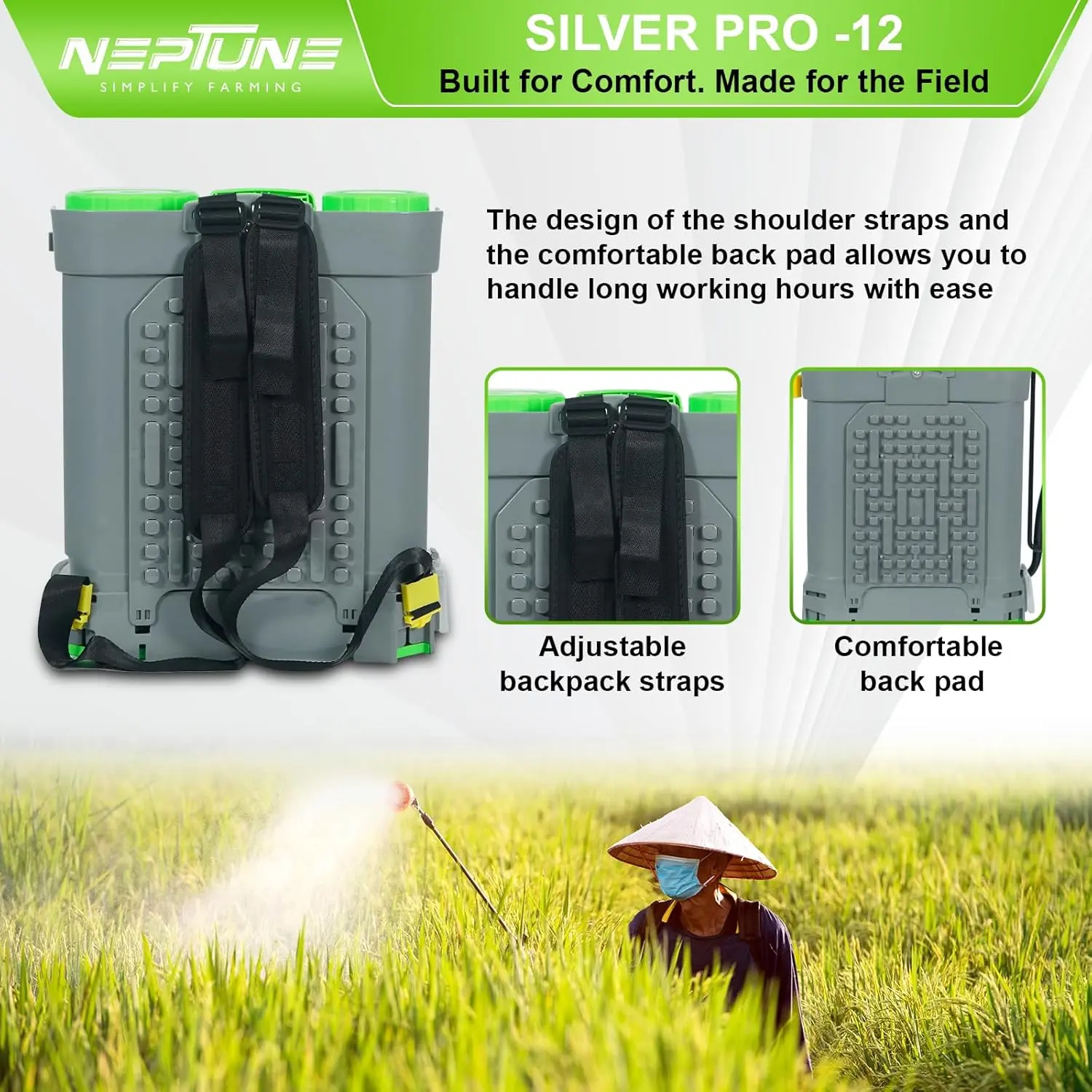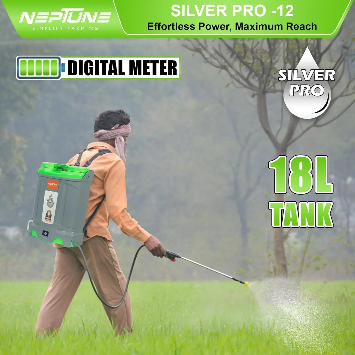 Neptune Knapsack Power Sprayer, designed to handle a variety of spraying tasks with ease. Featuring a powerful 31 cc 4-stroke petrol engine, this backpack sprayer offers advanced technology for reliable performance and reduced emissions. With a 25-liter capacity, it provides ample solution volume for extended operation, making it ideal for agricultural, ...garden, and commercial applications.